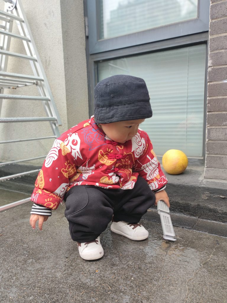 爸爸说今天下雨降温,外面好冷。我去露台玩儿了一会儿就回屋里啦。看来今天不能出去玩了。😥