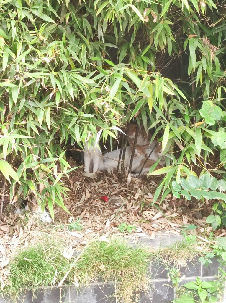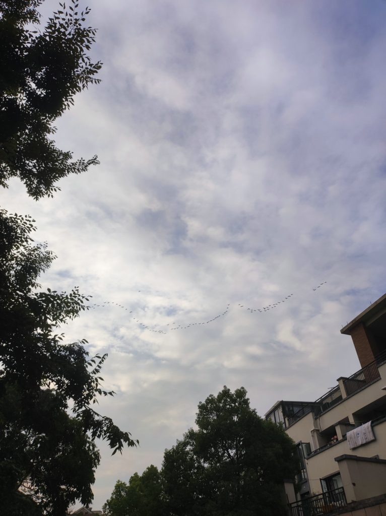 今天下午跟优优妹妹一起散步啦,路上看到了一群大雁从头上飞过,还看到了小猫咪一家在竹林下面偷偷的看我们。