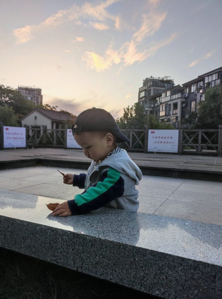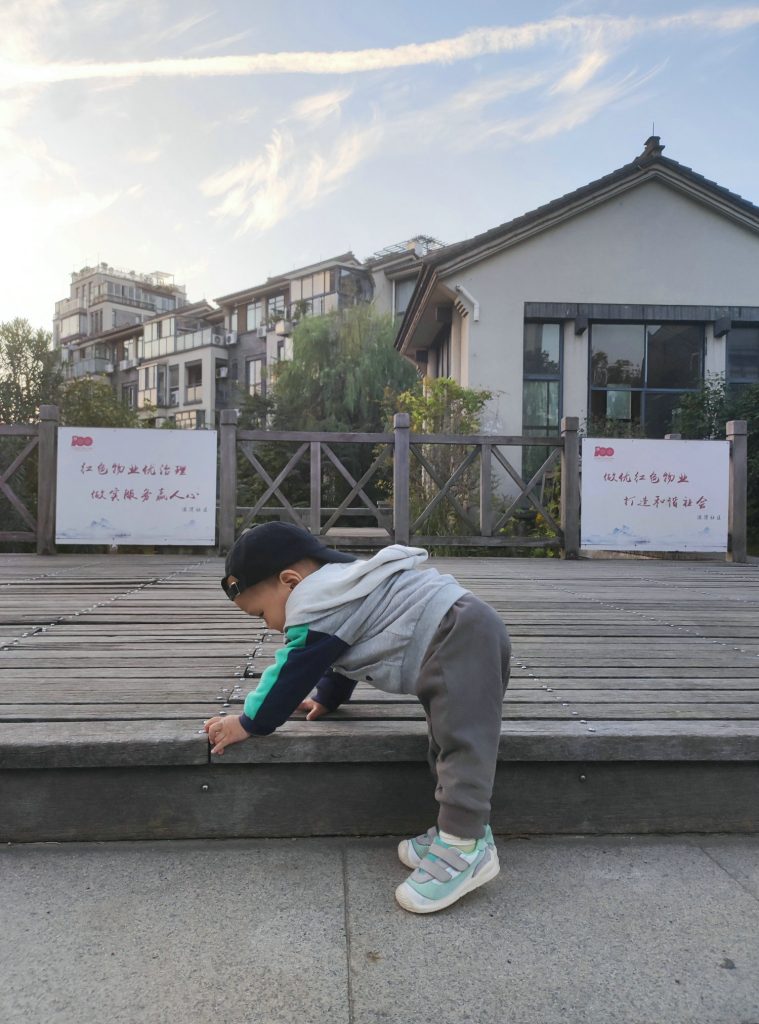 好多小朋友都在玩滑滑梯,我还走不太稳。所以爸爸带我去了人少的地方玩,我自己走过去坐坐,看看螺丝钉,再去捡几片叶子。就能玩的很开心啦。