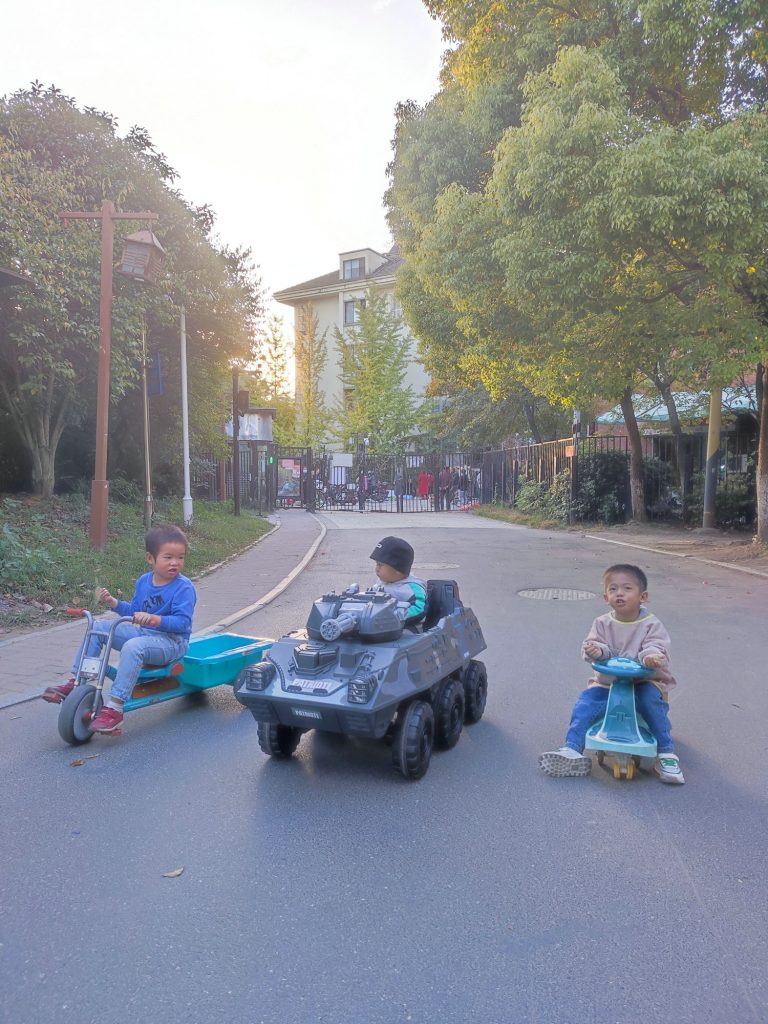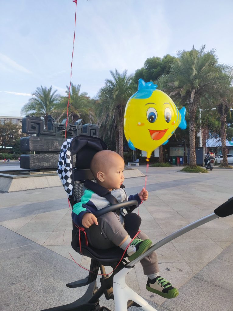 回家的时候,看到了那天玩沙子的小哥哥。他骑了一个三轮车,还带了一个扭扭车的小哥哥,他们要跟我比赛。把坦克放到家里,爸爸给我换了车车,我们一起去小广场等去超市的妈妈和姥姥。看到卖气球的时候,爸爸赶紧去买了两个。他说优优经常送我东西,要送妹妹一个。