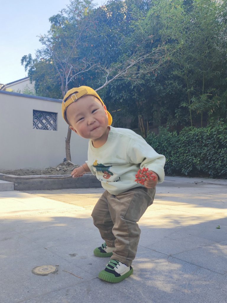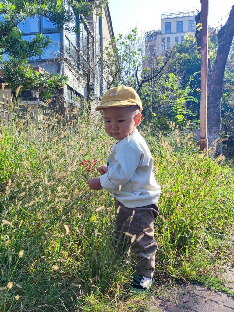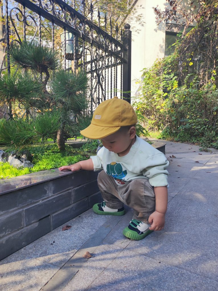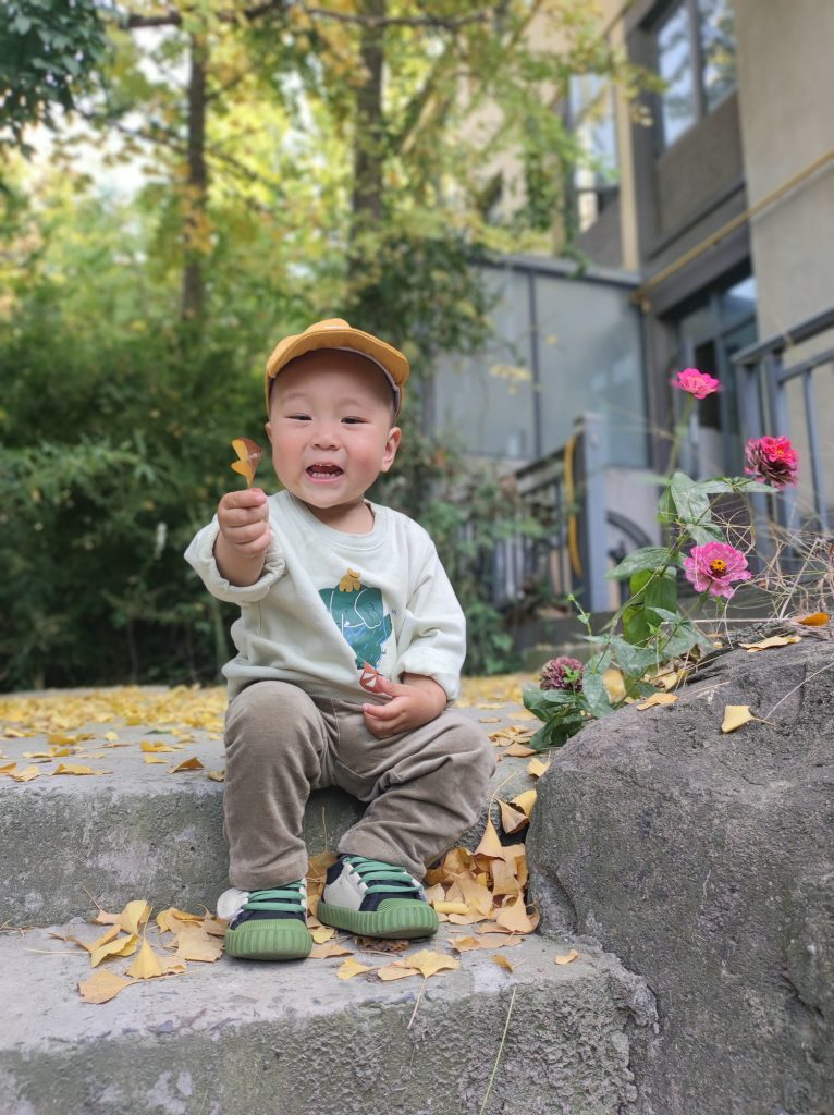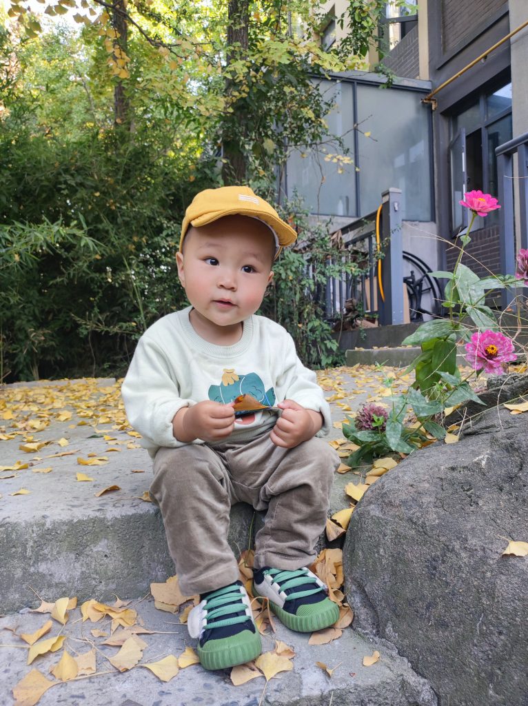 爸爸给我抱回家我就醒了,而且喝完奶粉就不睡了。没办法,他只能带我再出去耗电去了。我们两个探索了1/4个小区,敲了石头,摘了毛毛草,捡了叶子和石头。幸好爸爸精力比较好。😃