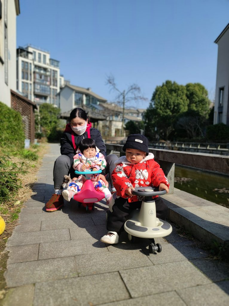 我的扭扭车玩的很好了,可以自己骑很长的路,自己拐弯加速。今天悠悠妹妹也出来玩了,我们一起比赛,阿姨还带了好多水果给我吃。那个阳光玫瑰好甜,甜的我都不要吃别的车厘子草莓了。嘿嘿😉